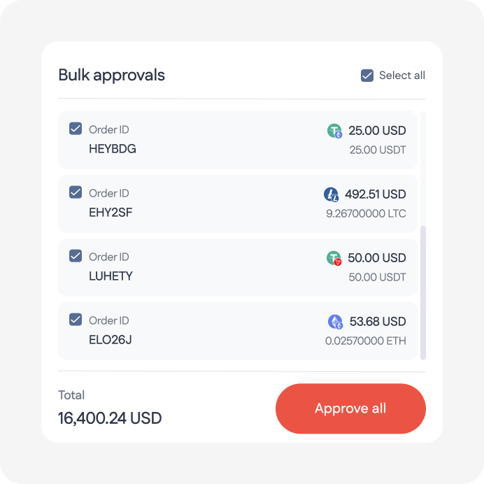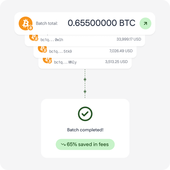 Accept and send crypto with full visibility, direct control, and no settlement fees.