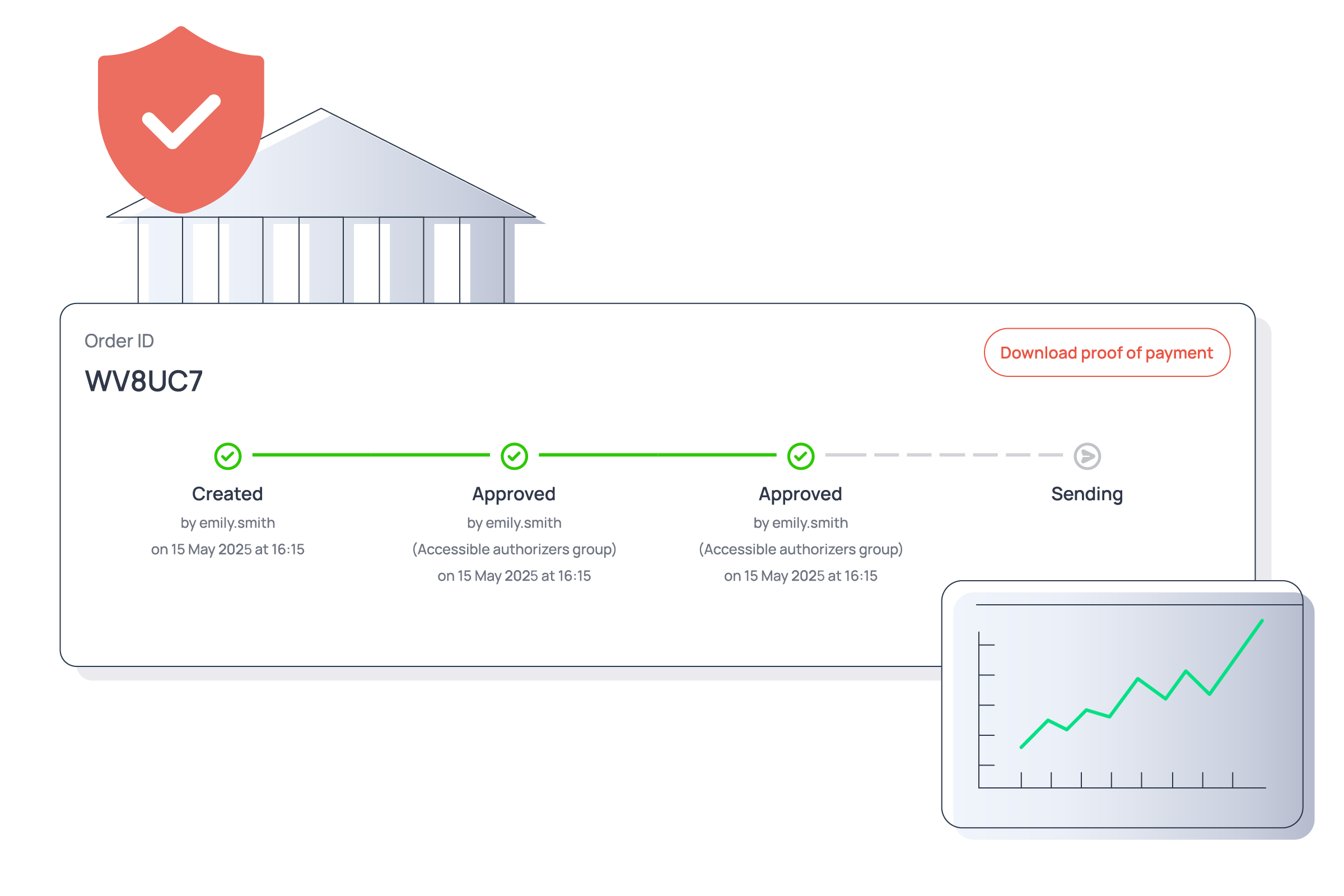 Manage permissions with role-based access, policy checks, and approval workflows — while ISO 27001 and SOC 2 Type II certification, supported by transaction audit logs, makes every action visible, compliant, and ready for review.